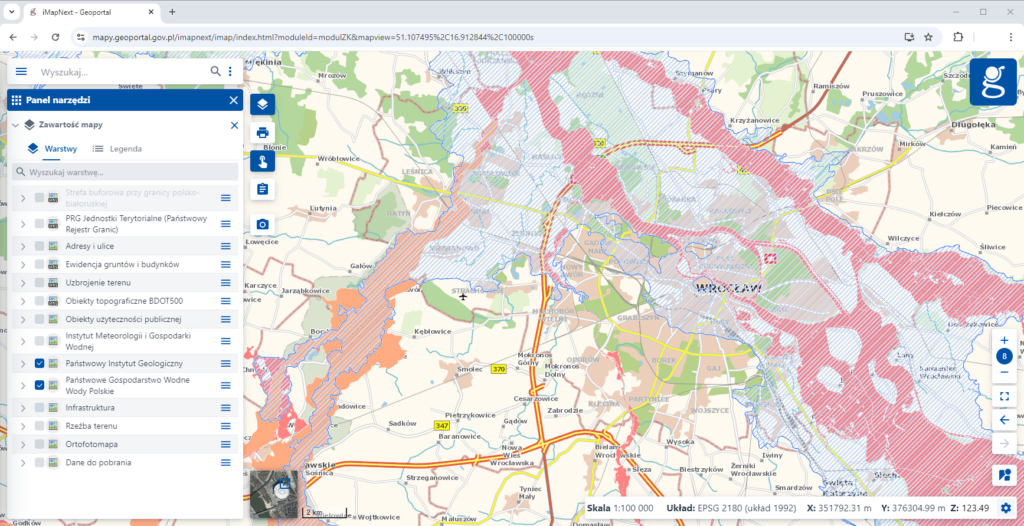 W serwisie www.geoportal.gov.pl udostępniliśmy nową kompozycję mapową „Zarządzanie kryzysowe”. Została ona stworzona na bazie naszego najnowszego, zoptymalizowanego silnika mapowego, zapewniając prostą i intuicyjną nawigację po mapach oraz zasobach Geoportalu.