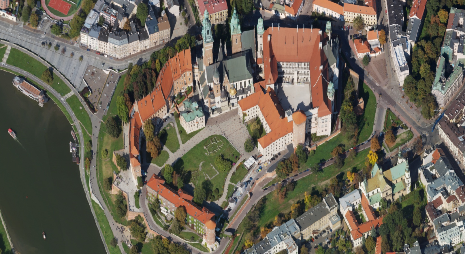 2. Zdjęcia lotnicze ukośne o GSD=0.05m z 2021 r. dla miasta Kraków (blisko 120 000 sztuk) pozyskane z Urzędu Miasta Kraków:
