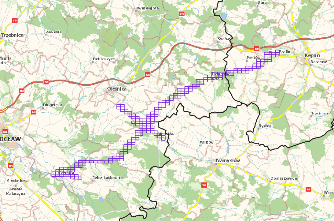 - Linia kolejowa nr 86 Bralin – Czernica – Wrocławska, dla której na obszarze około 80 km2 opracowano: