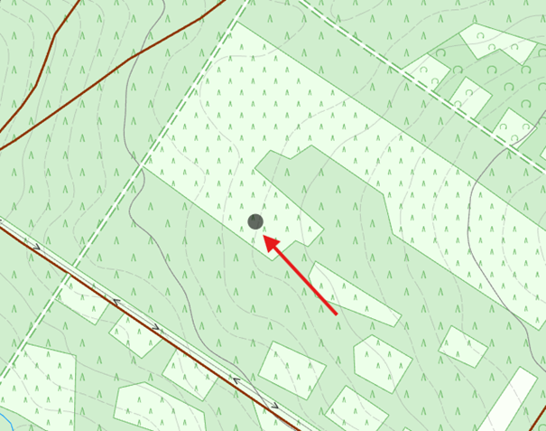Po wybraniu opcji identyfikacji i kliknięciu w wybrane miejsce na mapie, punkt ten zostaje oznaczony szarym kółkiem. Dzięki temu użytkownik może łatwo zlokalizować ostatnio identyfikowany obiekt.