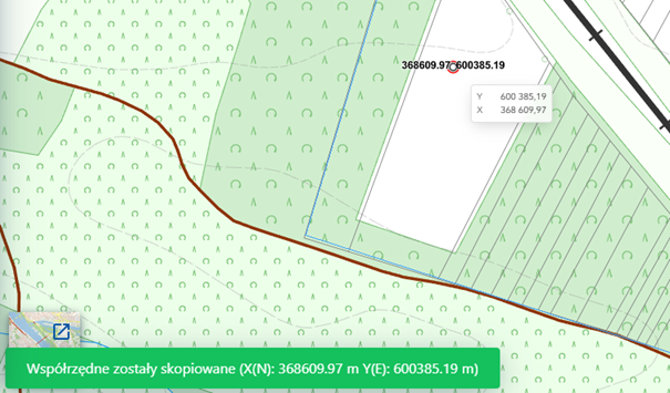 Współrzędne punktu zostaną wyświetlone na ekranie i jednocześnie skopiowane.