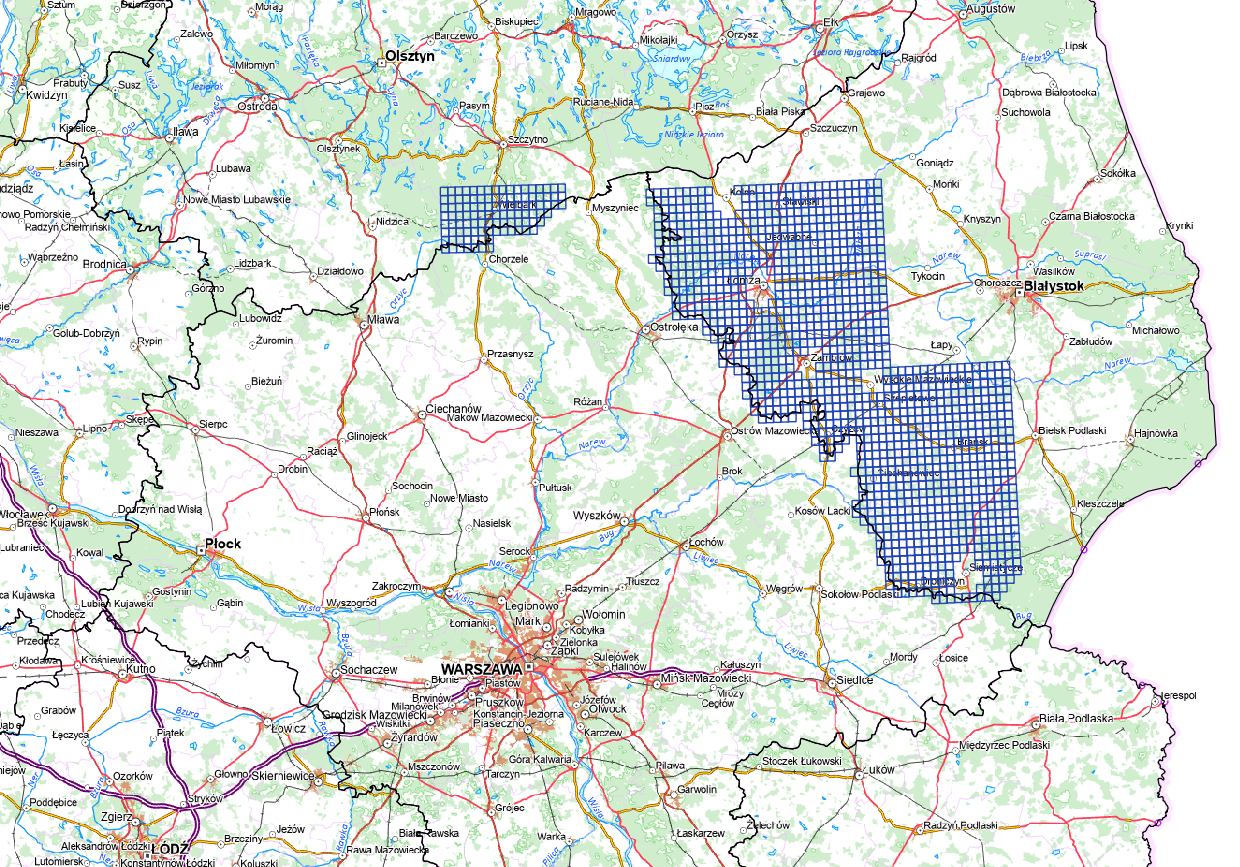 • 116 fotopunktów, - dla części obszarów województw warmińsko-mazurskiego i podlaskiego, o powierzchni około 6 751 km2