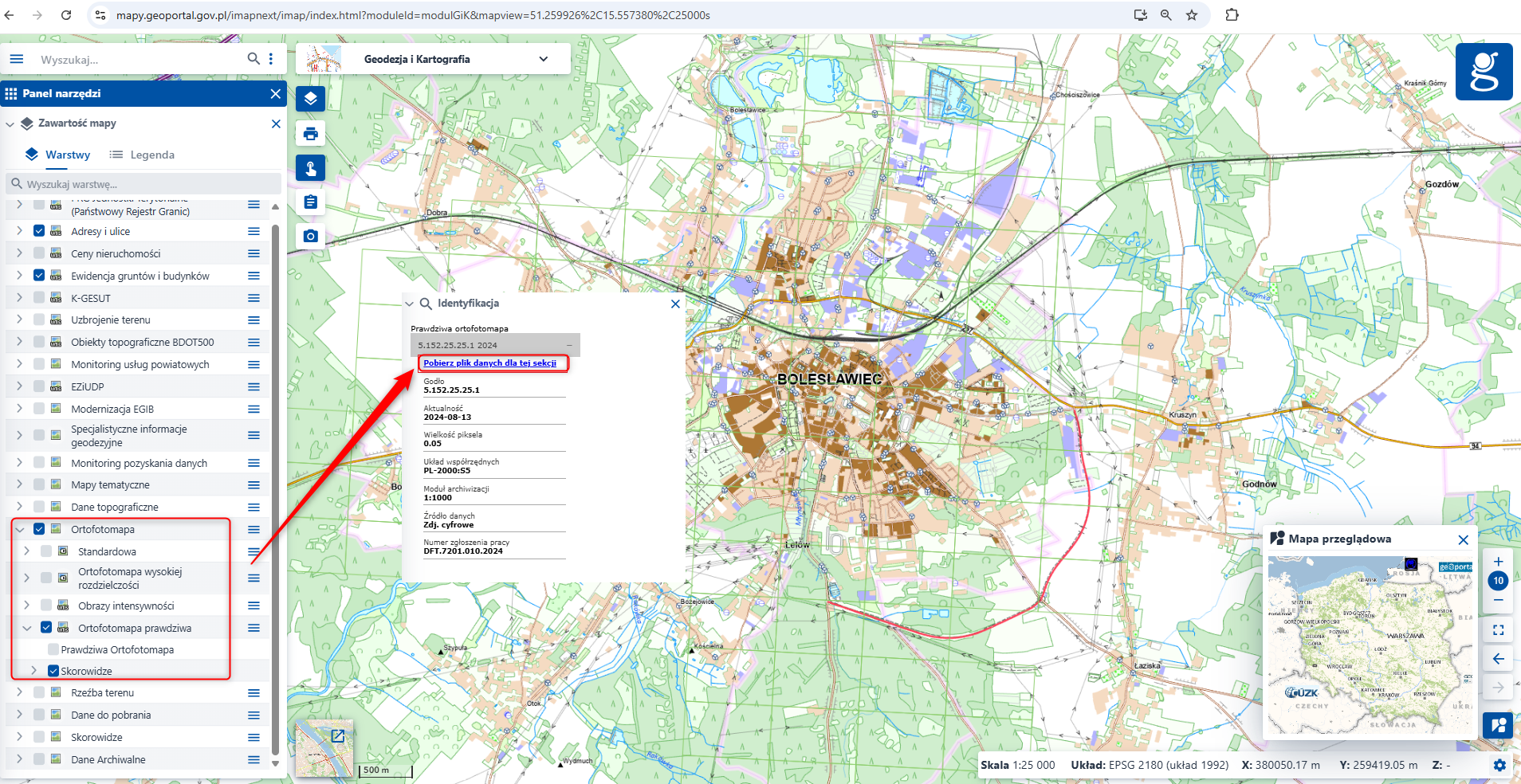 Opracowane dane (z wyjątkiem zdjęć lotniczych) można bezpłatnie pobrać do powszechnego wykorzystania w serwisie www.geoportal.gov.pl – „dane do pobrania”.