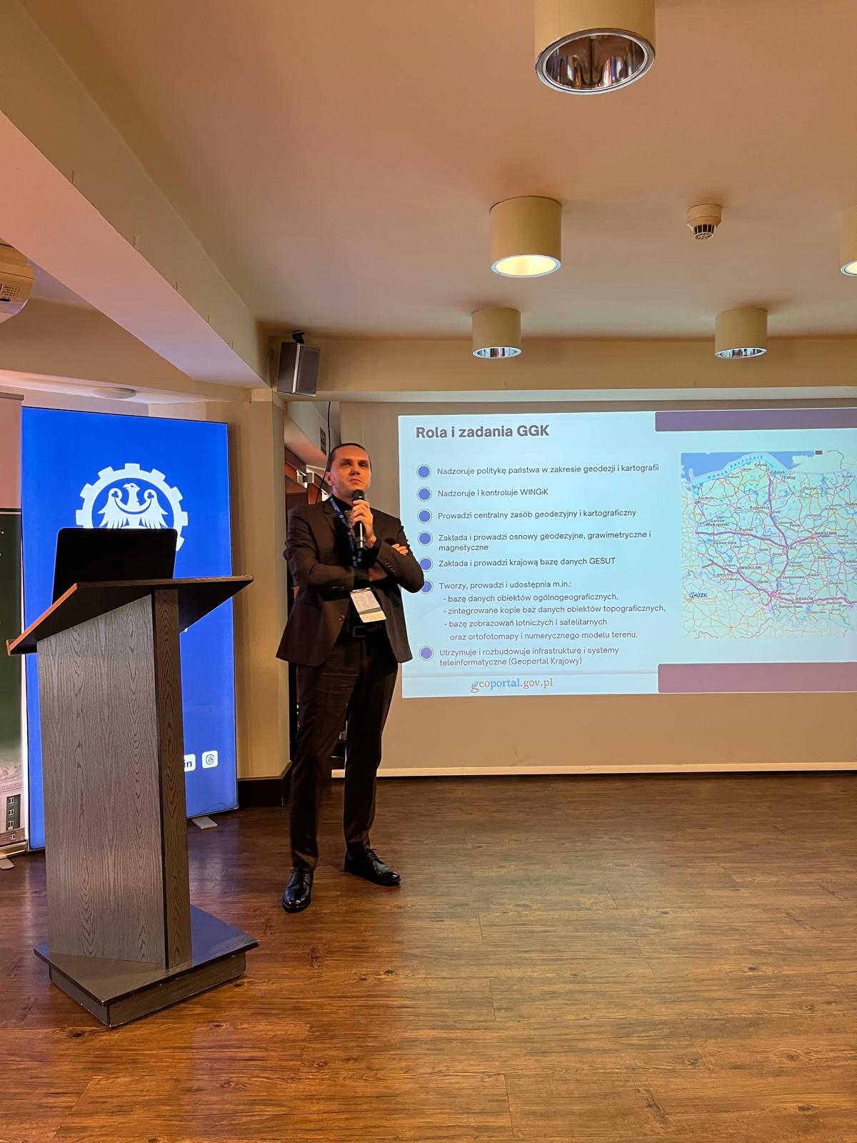 Pod honorowym patronatem Głównego Geodety Kraju Andrzeja Żylisa odbywa się w dniach 22 – 24 października 2025 r. w Ustroniu konferencja „XVIII DNI MIERNICTWA GÓRNICZEGO I OCHRONY TERENÓW GÓRNICZYCH Wyzwania w okresie transformacji energetycznej”. Podczas konferencji Zastępca Dyrektora w Departamencie Informacji o Nieruchomościach Szymon Szczerba wygłosił referat pt. „Wykorzystanie otwartych danych PZGiK w obszarze górnictwa i ochrony terenów górniczych”. Organizatorem konferencji jest dziekan Wydziału Górnictwa, Inżynierii Bezpieczeństwa i Automatyki Przemysłowej Politechniki Śląskiej, dr hab. inż., prof. PŚ Krzysztof Filipowicz.